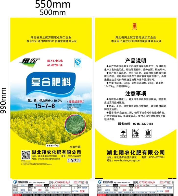 湖北省農業廳春、秋季主推肥料產品。“翔農”牌復合肥授予“湖北省名牌產品”、榮獲“湖北省著名商標”。“咸寧市農業產業化市場重點龍頭企業”;公司以“保質保量,服務三農”為宗旨。用心做好每顆肥,真情回報全社會。充分體現“翔農”品牌文化的親和力和感染力。